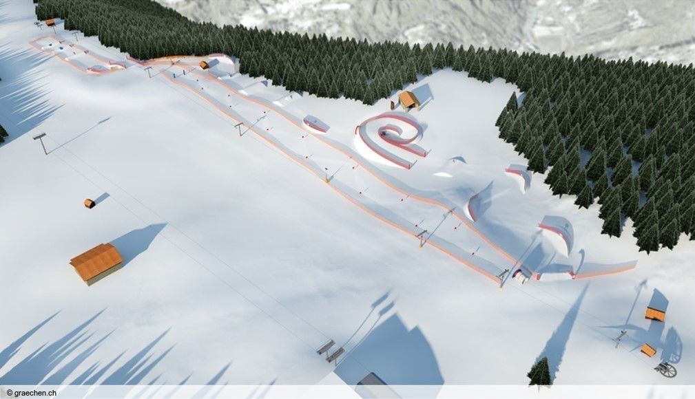 In Grächen, everything is directed at junior skiers. Even the fun slope with boxes, jumps, steep curves and a snail is primarily tailored for children. Freerider who prefer the adult version can use the snowpark in Zermatt that is approx. 1 hour away. The drive is worth it - "Snowpark Zermatt" in Zermatt has everything experienced freestylers and semi-professionals could ever wish for.